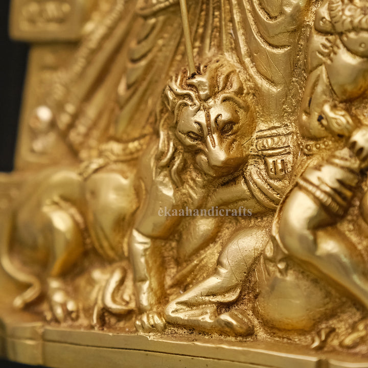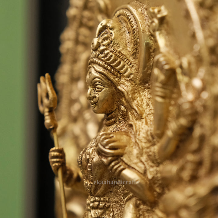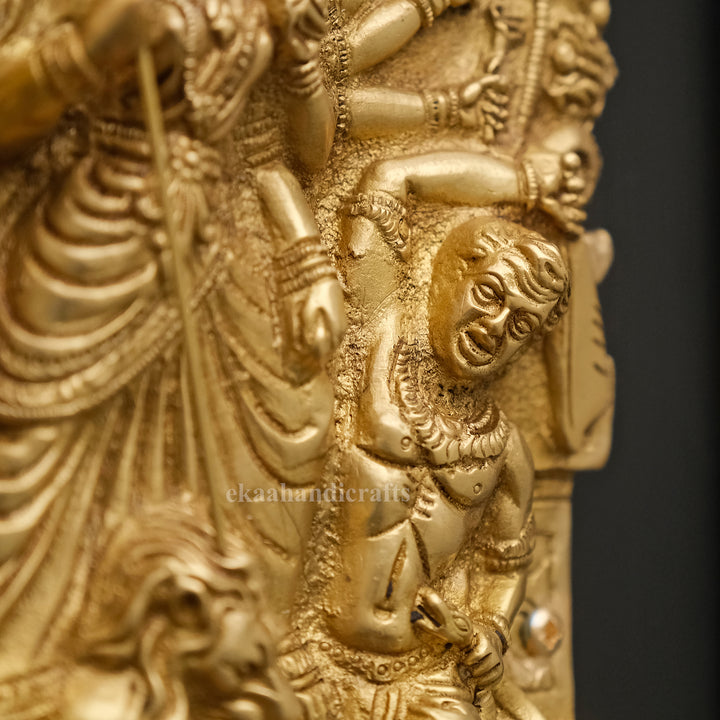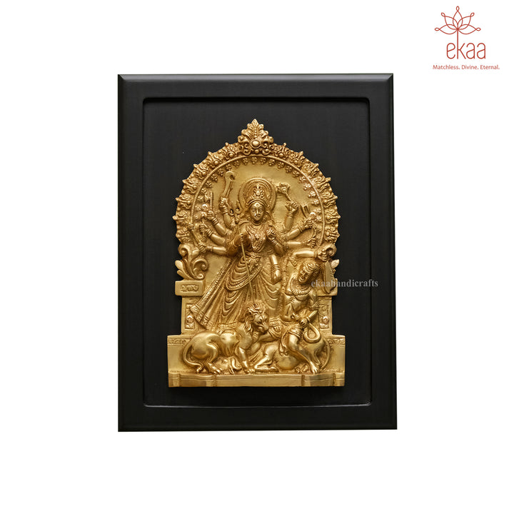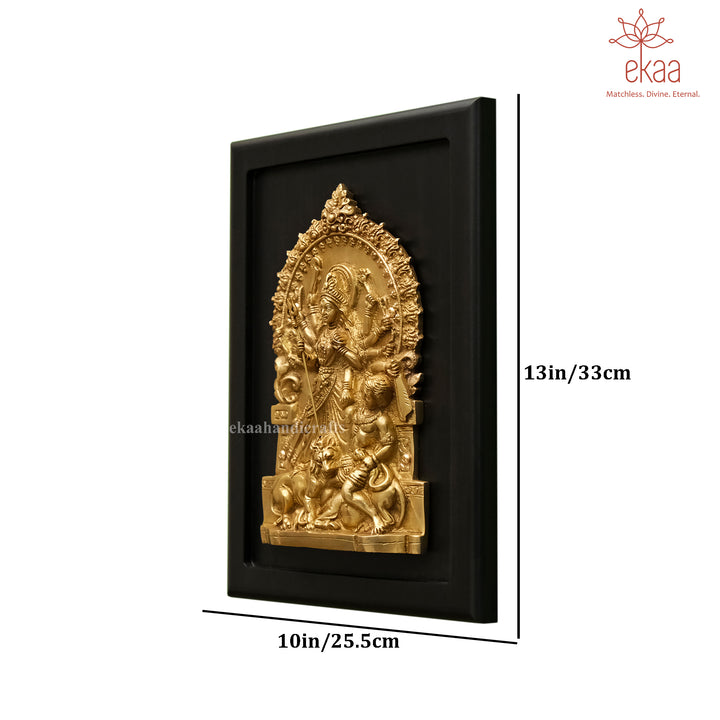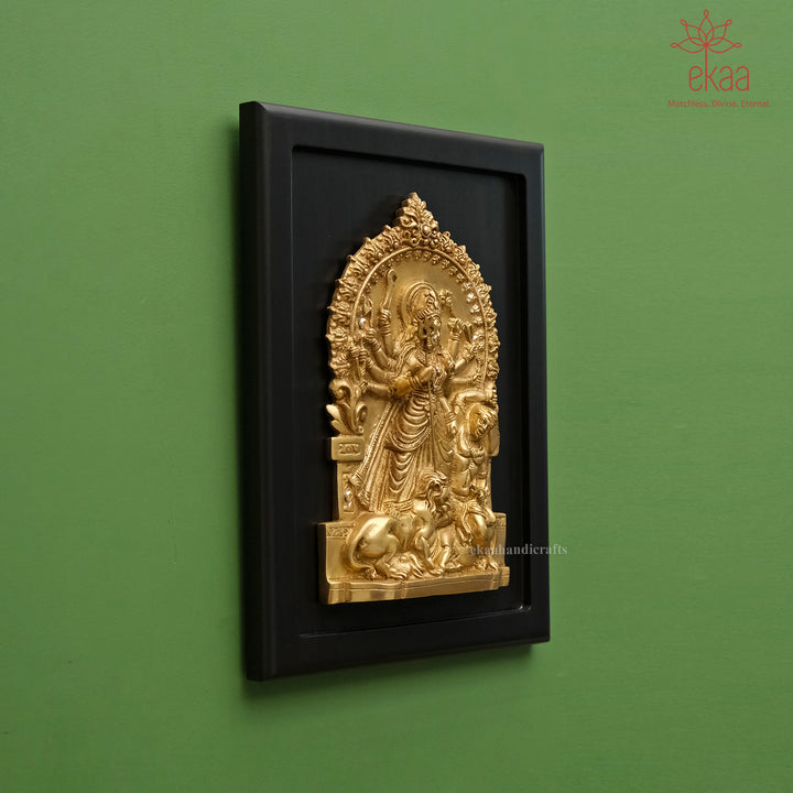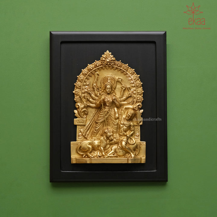 13" Goddess Durga Brass Wall Hanging with Frame – Divine Wall Decor